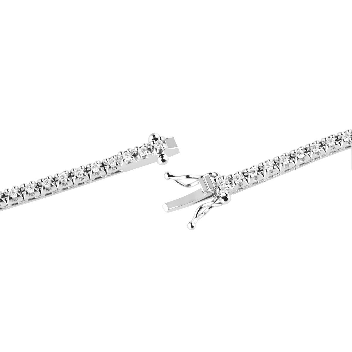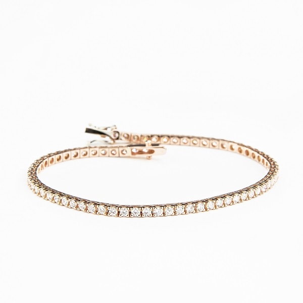 Uno dei tratti distintivi di questa tipologia di bracciale è la chiusura, che tende a scomparire per donare il tipico effetto del filo ininterrotto di diamanti o pietre preziose.